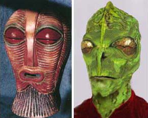 On the left, a photo of a mask of unknown origin, downloaded off the Internet.